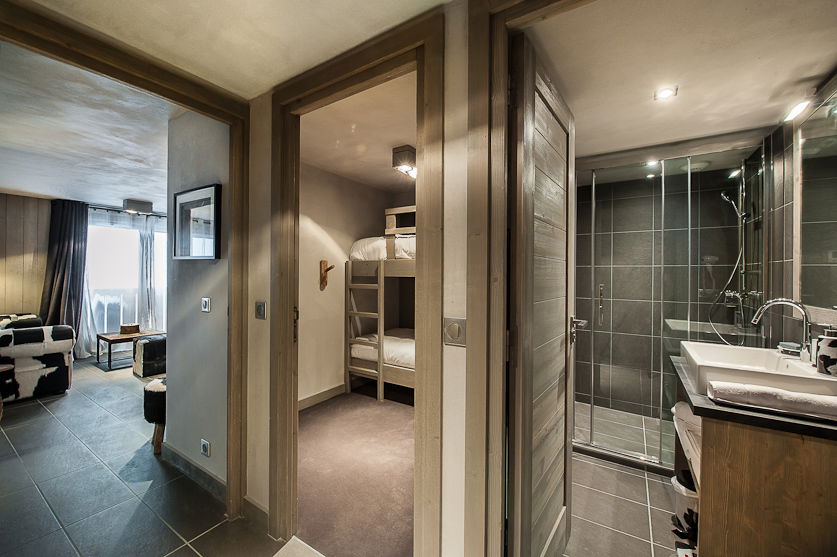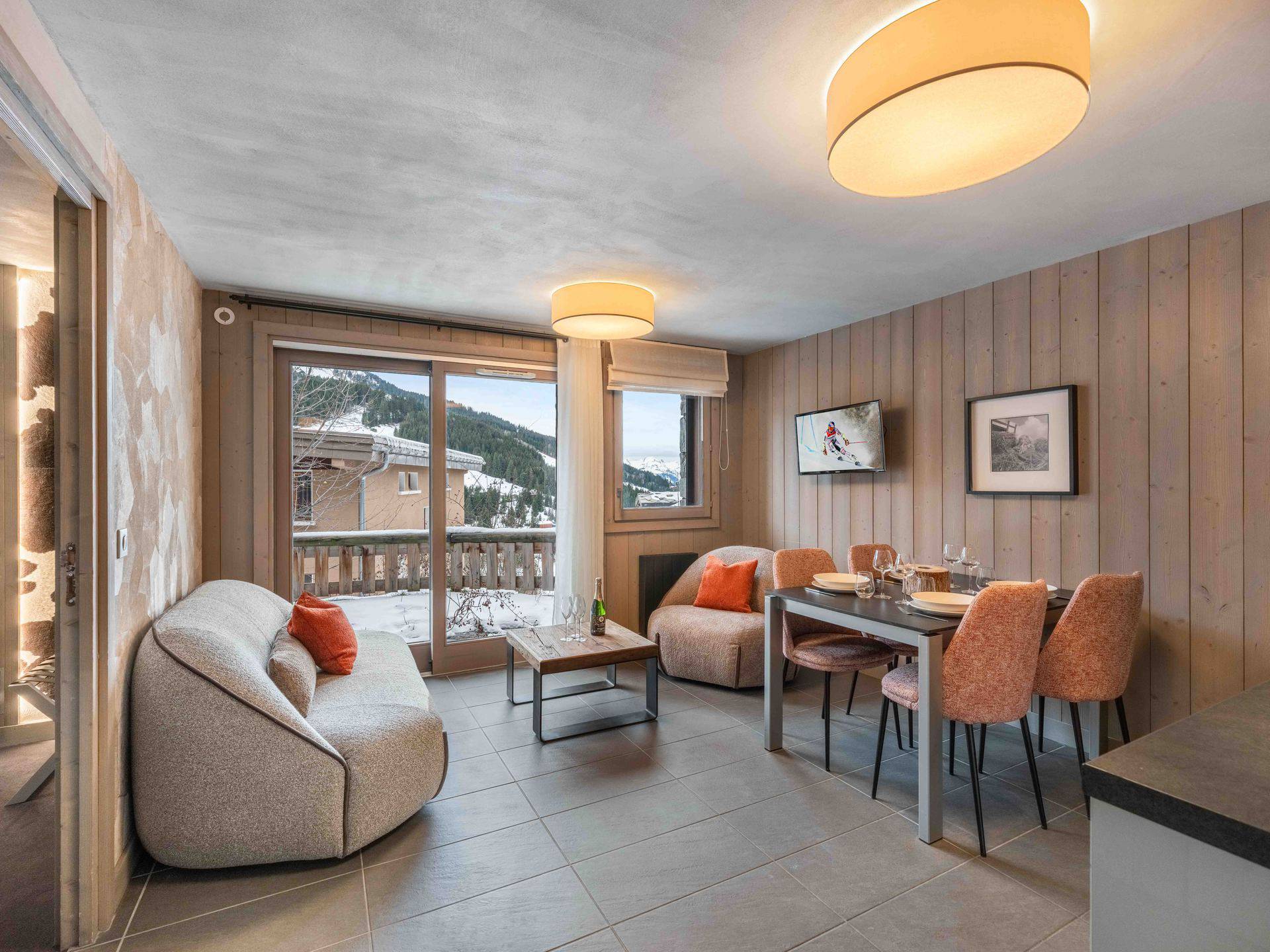The elegant apartment "HEREFORD" is situated in the Chalet Les 3 Vaches (level -2) in the center of the resort and close to the slopes.