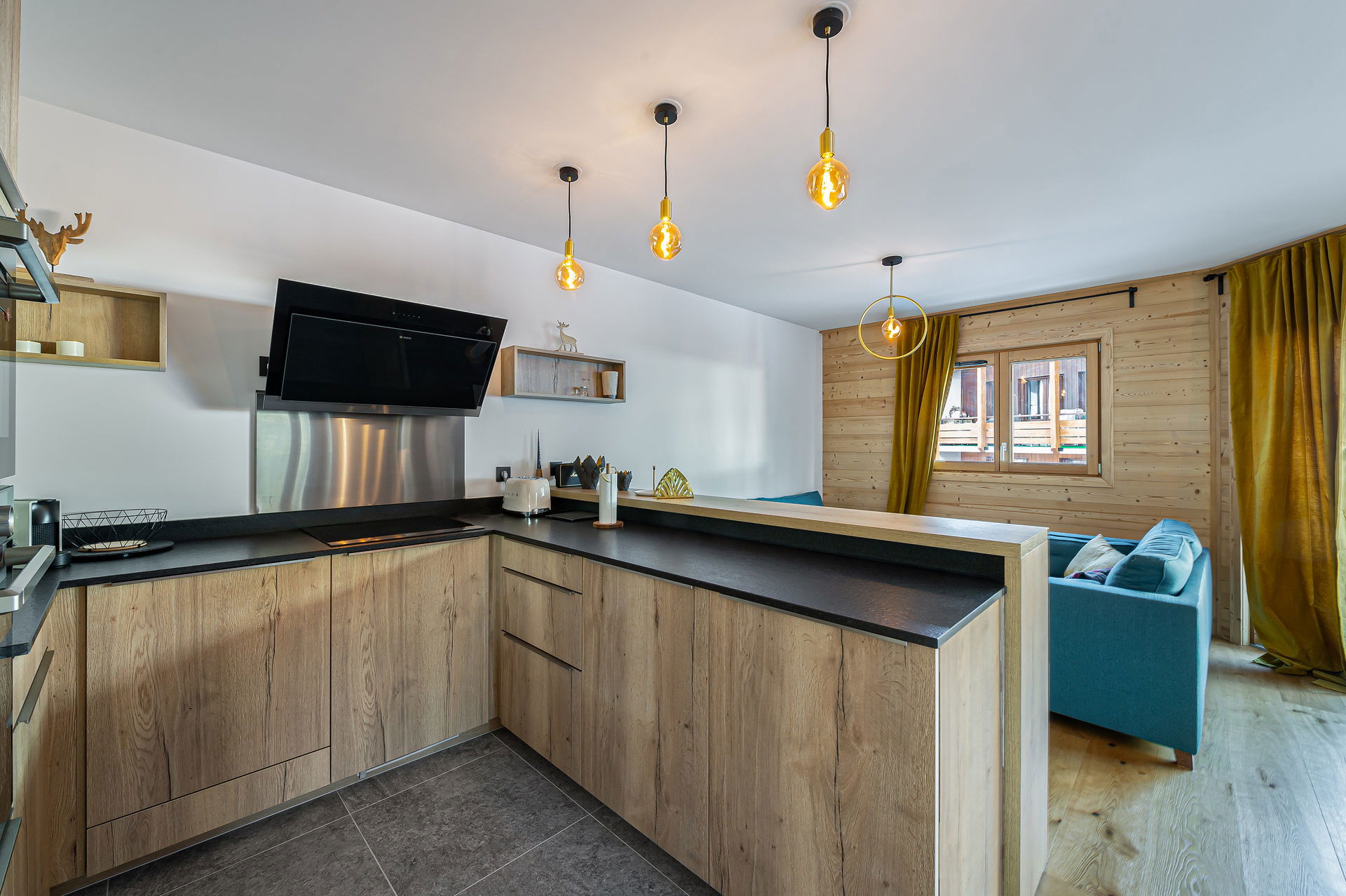 - Fully equipped open kitchen: Fridge-freezer, oven, microwave, dishwasher, extraction hood, toaster, kettle, filter and Nespresso coffee makers, raclette and fondue appliances