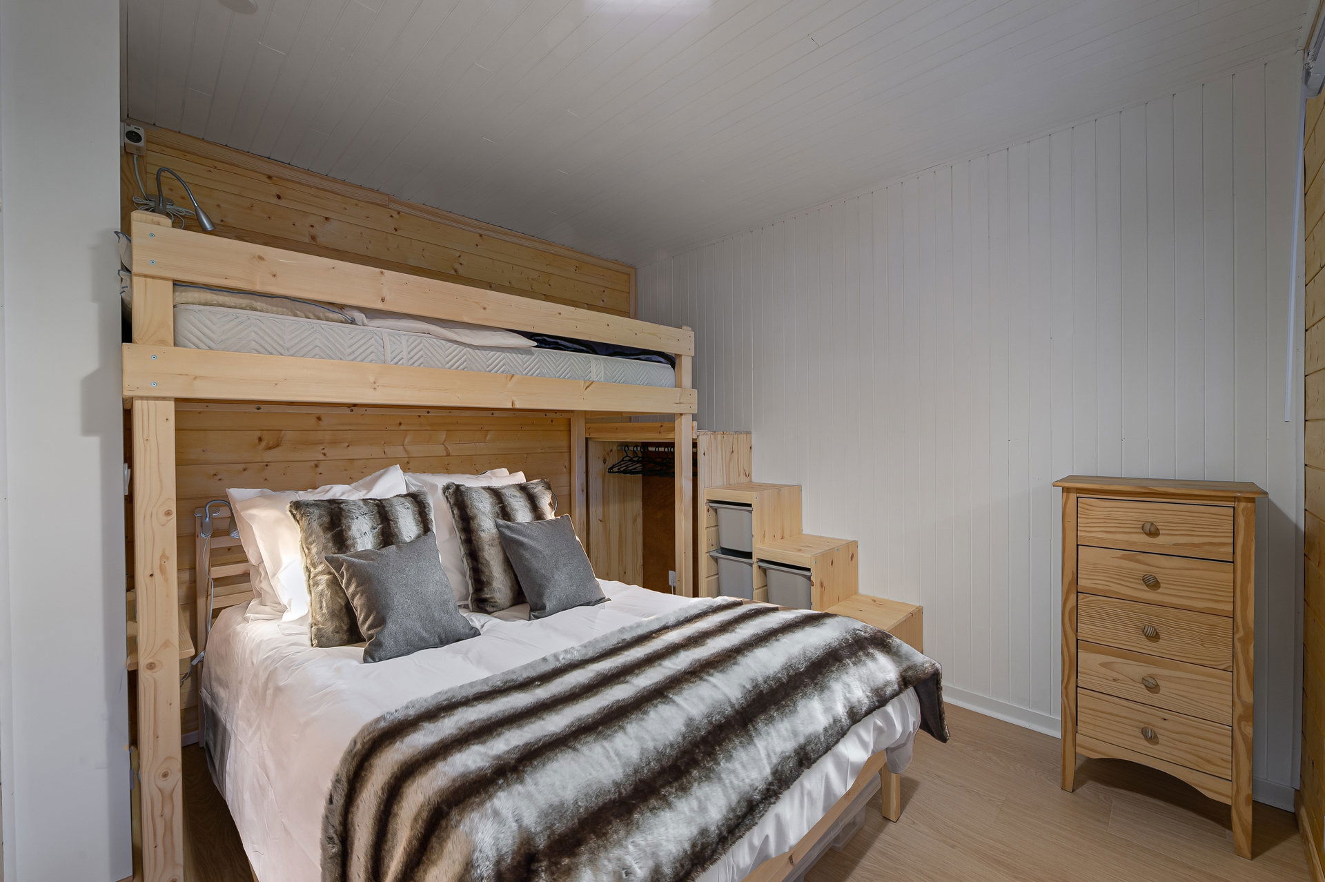 - A double ((140*200) cabin bedroom a raised single bed (90*200) for a child on top