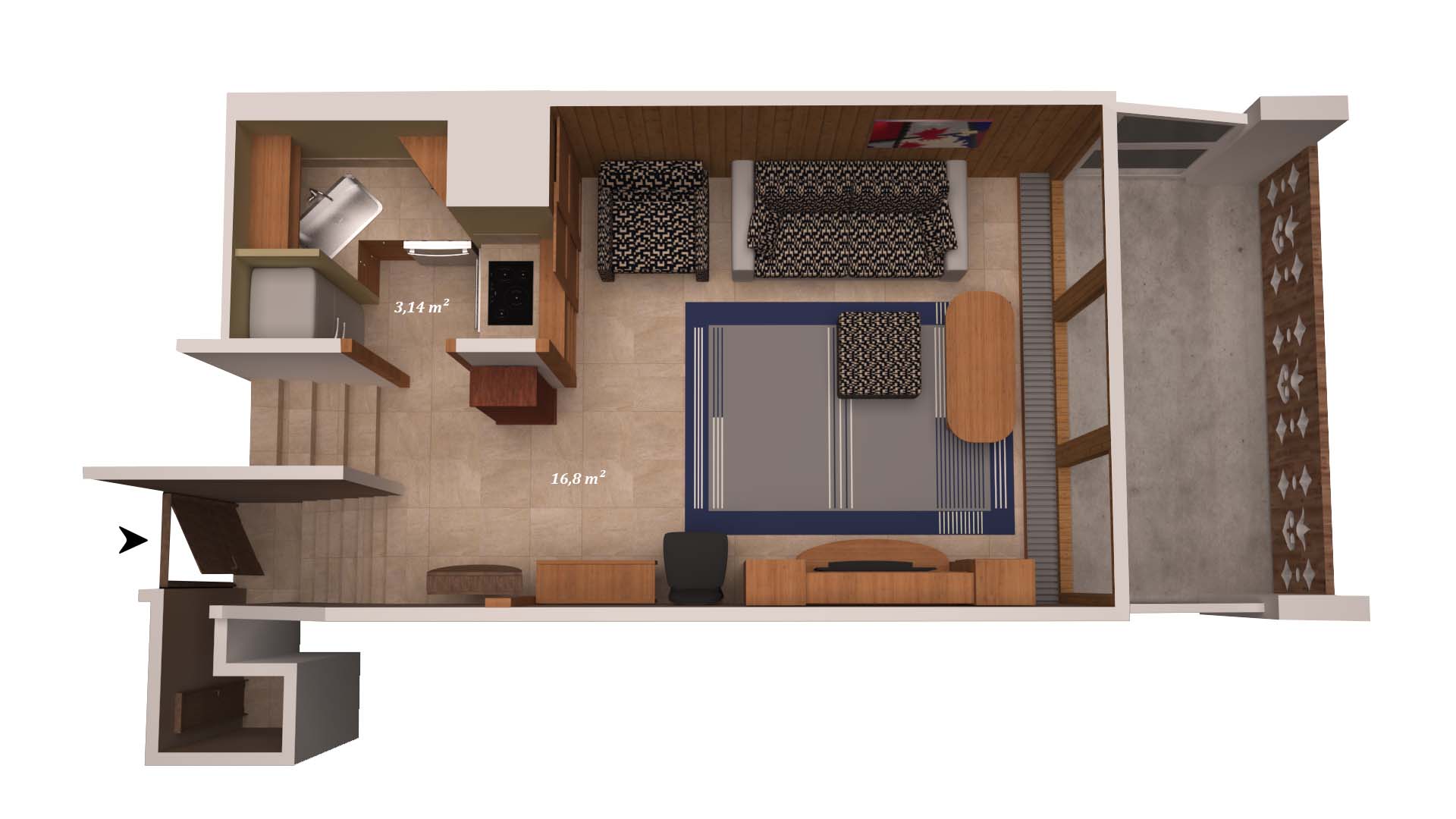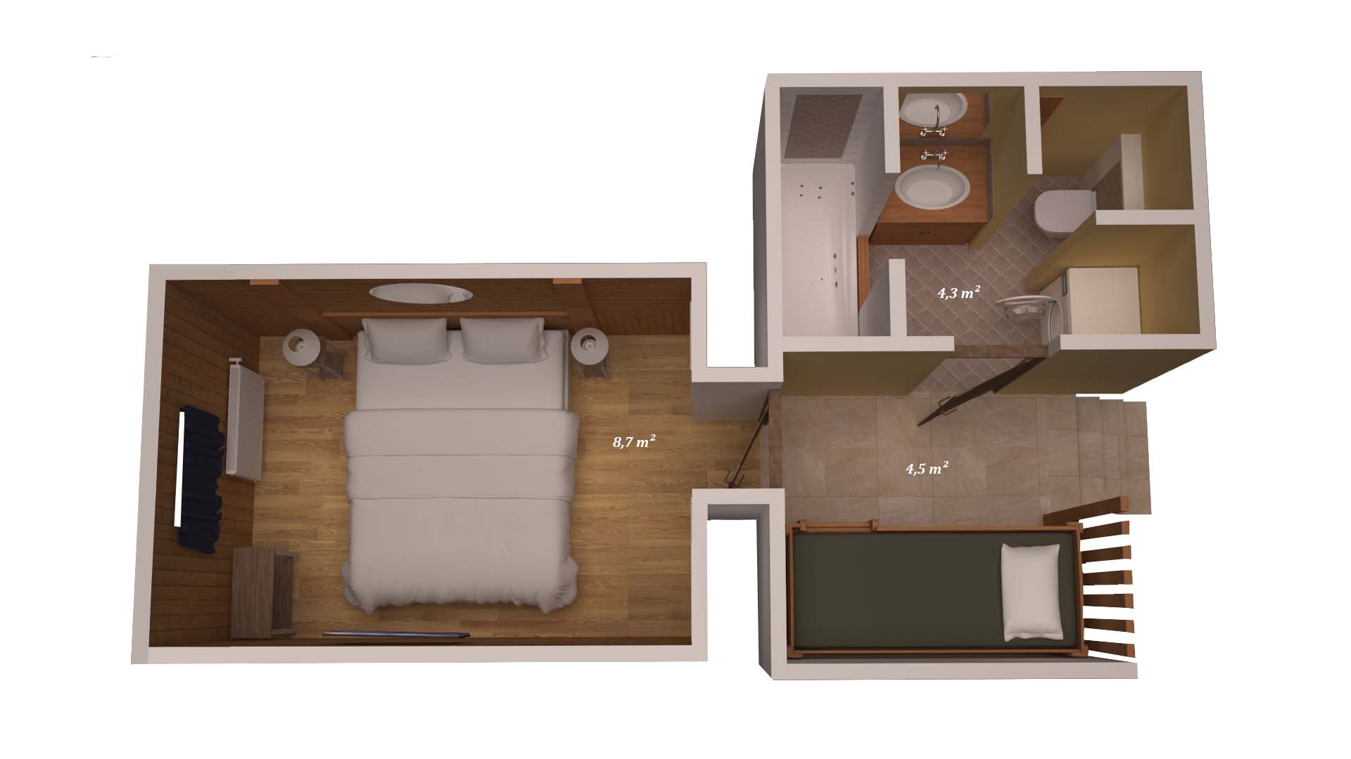 - Bedroom : 2 single beds making 1 King-size bed (180x200 cm)