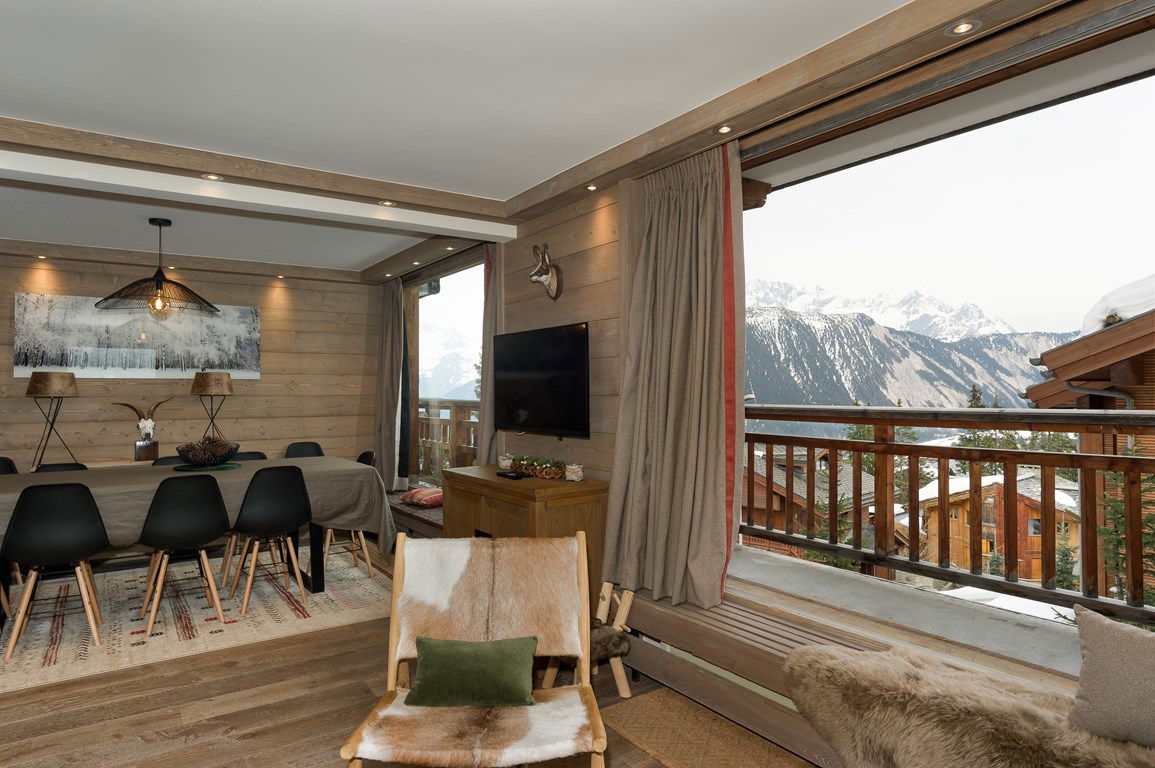 - A living room with lounge area and dining room, balcony, amazing view on the resort and the surrounding peaks