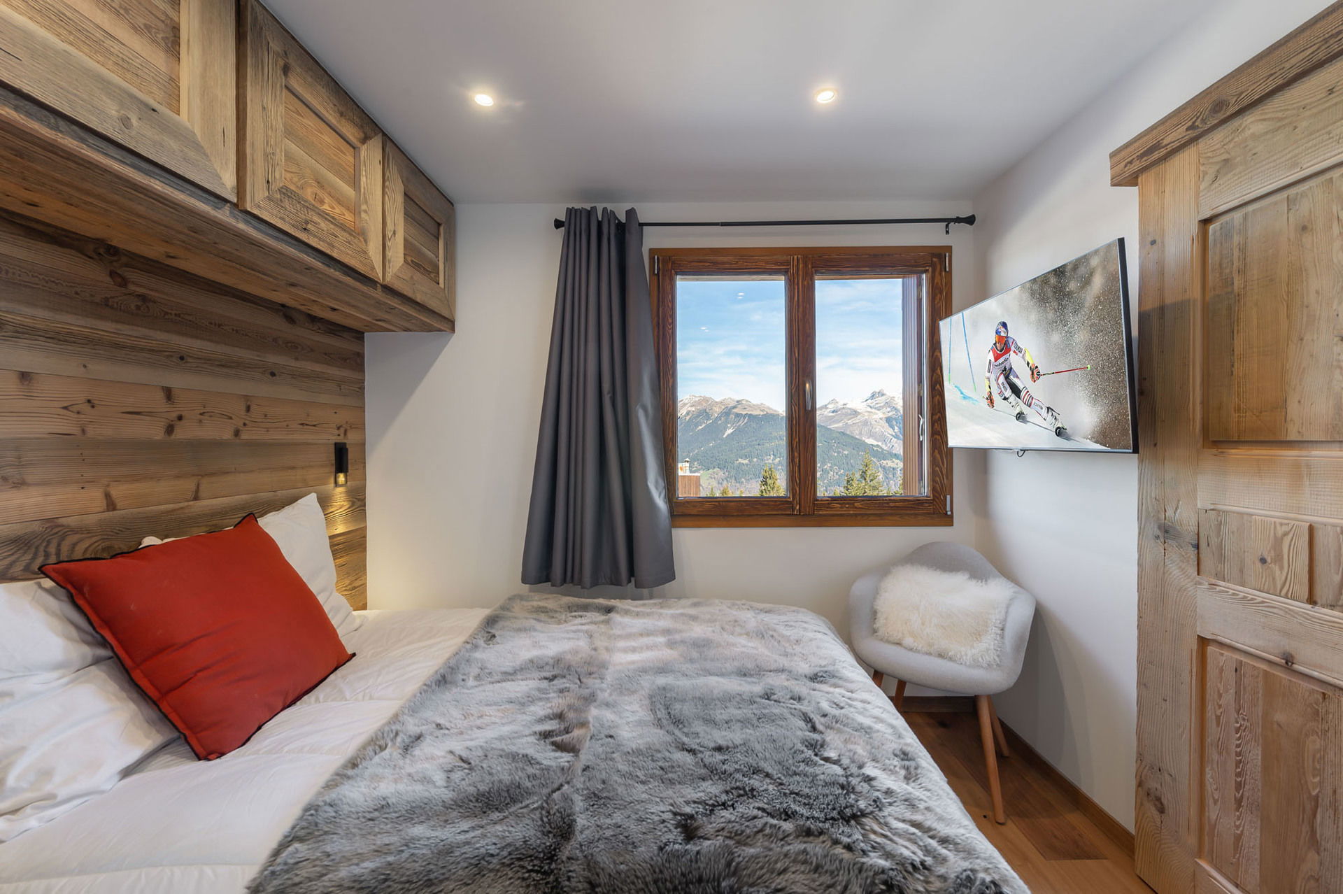 Apartment located on the 2nd floor in a nice chalet "Le Roc Plantrey" at the foot of the ski slopes. With a surface of about 85sqm, it welcomes 6 people in its 3 bedrooms.
