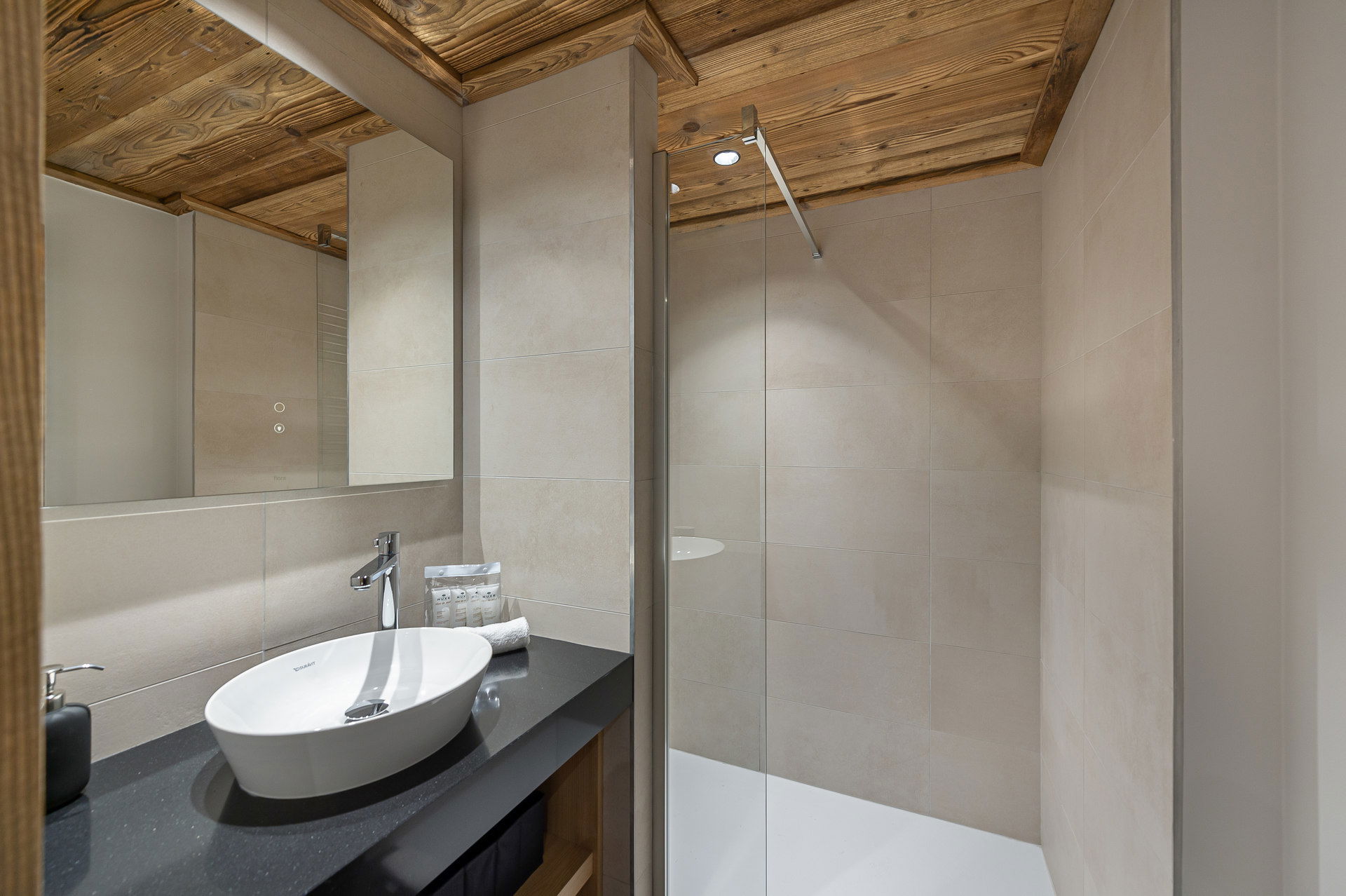 Completely new apartment of 128 sqm with 4 bedrooms welcoming up to 6 adults and 2 children. It is situated in the residence ALPAMAYOR nearby shops and very close to slopes, this apartment includes: