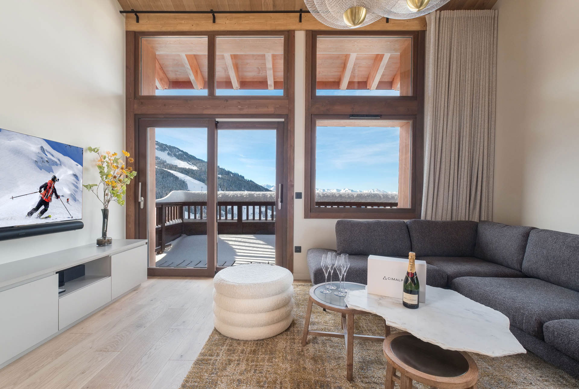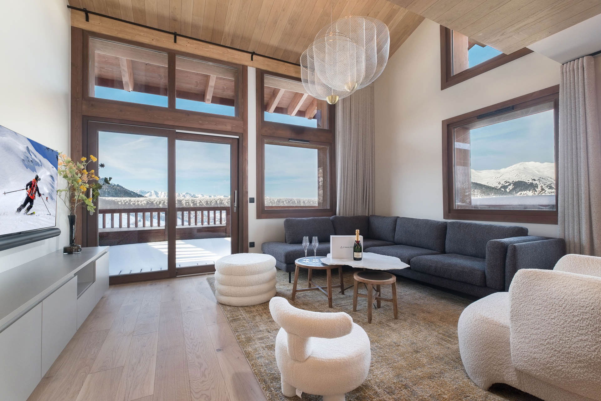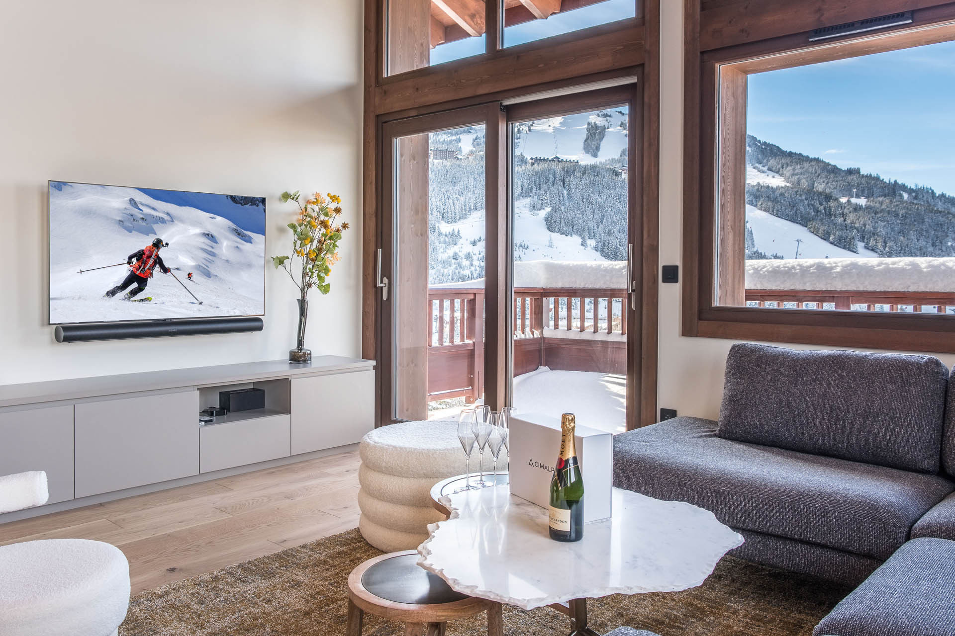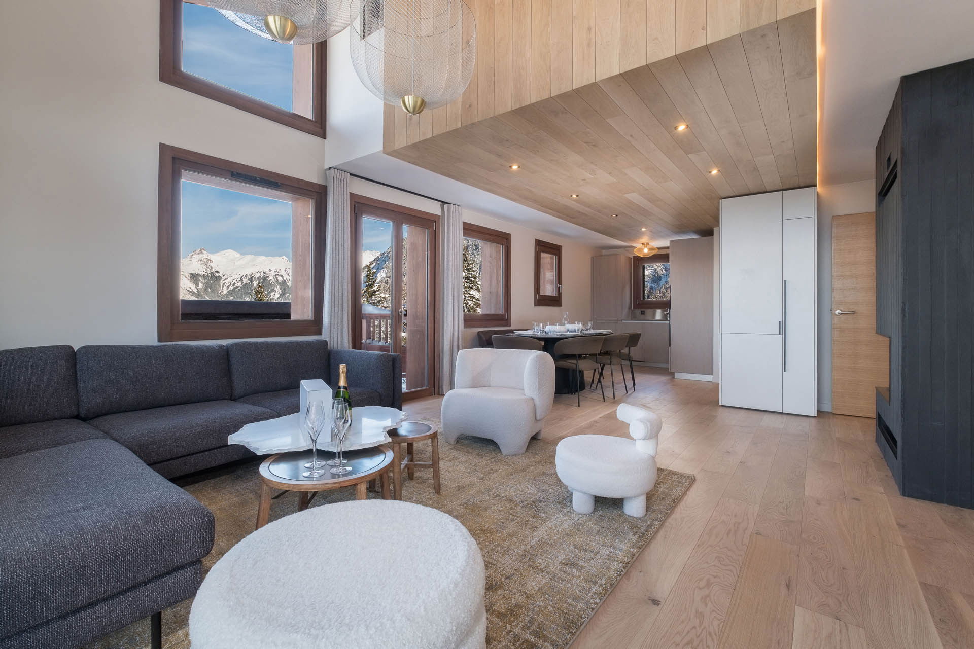 Apartment ARCELIN 4 is an outstanding 105m² duplex on the 1st floor of a 4-unit chalet, located in the "Glaciers" private estate at the entrance of Courchevel Moriond. Made up of 2 levels, it can accommodate 4 adults and 4 children with its 3 suites.