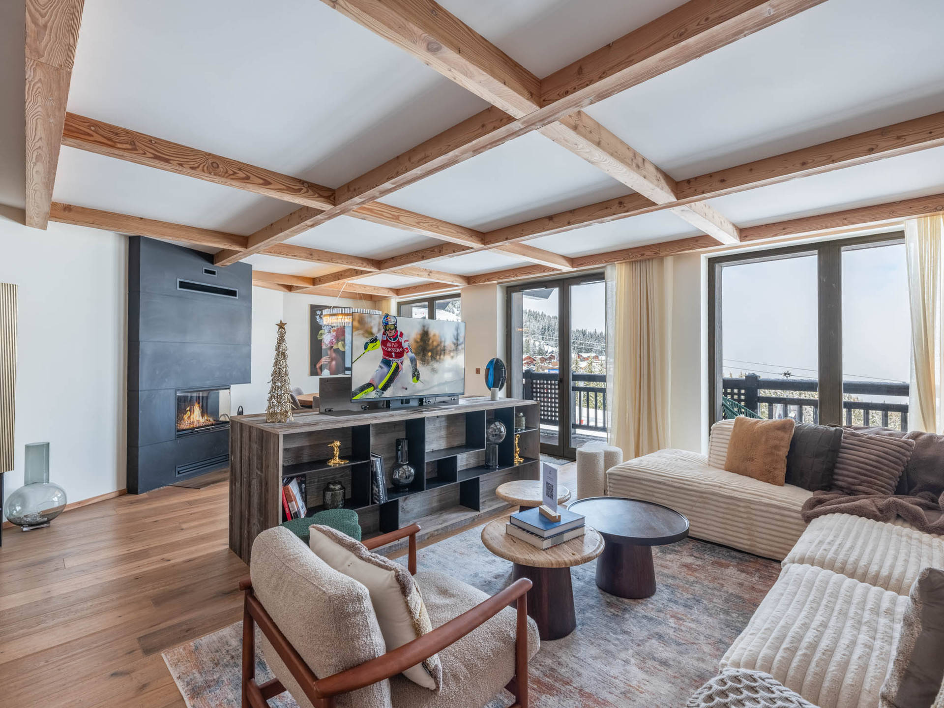 New duplex apartment of 156 sqm for 8 adults with 4 bedrooms. The ski slopes are at the foot of the residence with an access by the ski room.