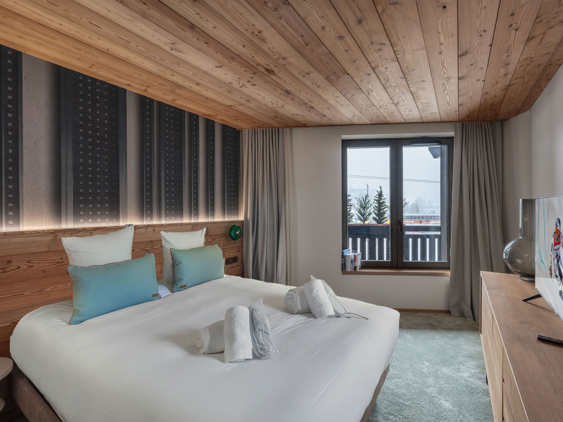 New apartment of 86sqm for 4 adults and 2 children with 2 bedrooms and 1 mountain corner. The ski slopes are at the foot of the residence with an access by the ski room.