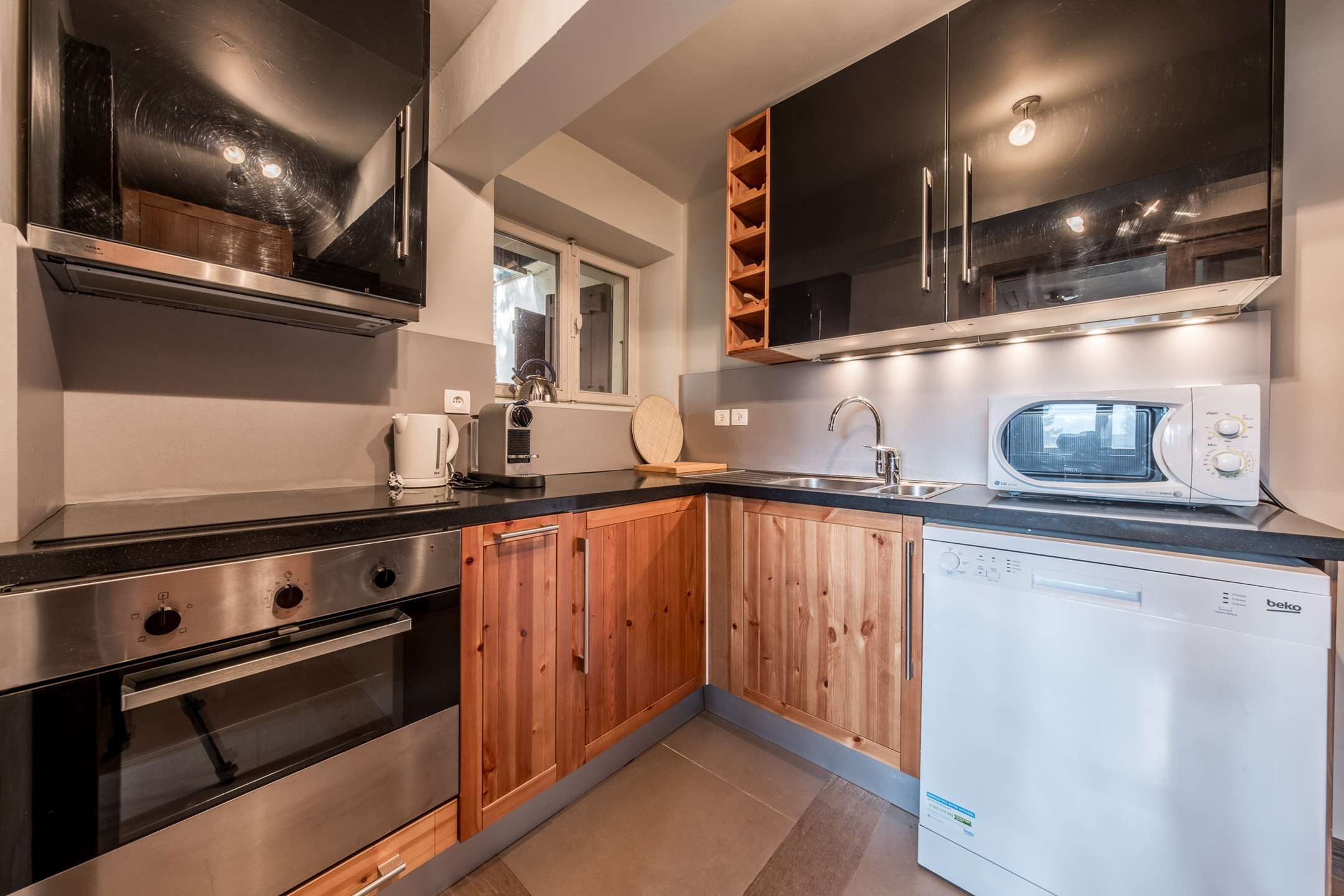 - A separate fully equipped kitchen with induction hob, refrigerator, washing machine, microwave, oven, kettle, toaster, etc.