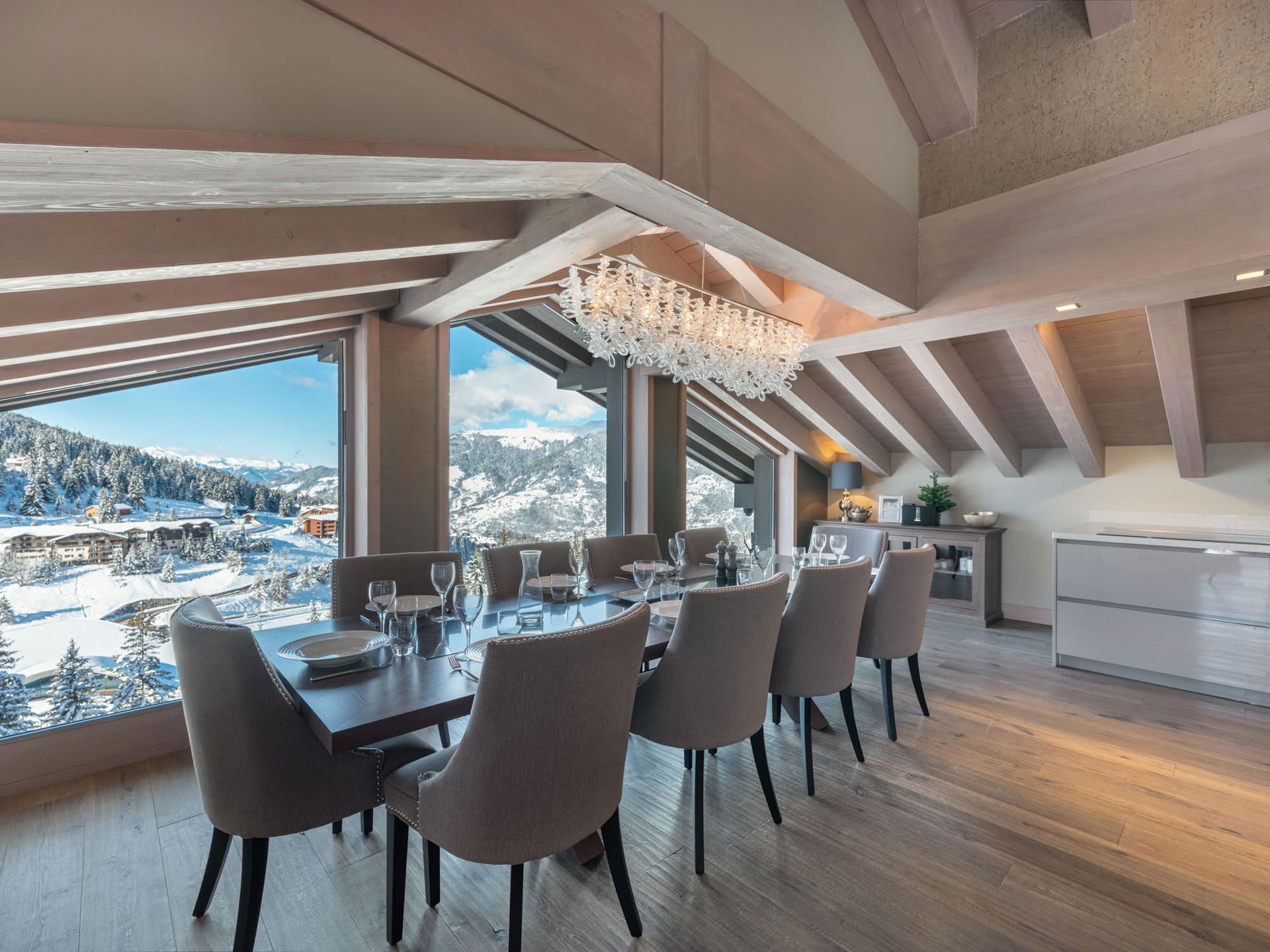 The chalet "CORTINA" is a magnificent independent chalet of 180m², equipped for 10 people (8 adults and 2 children), spread over 4 levels with an elevator. Numerous high-end amenities and services will delight the occupants of this beautiful alpine chalet.