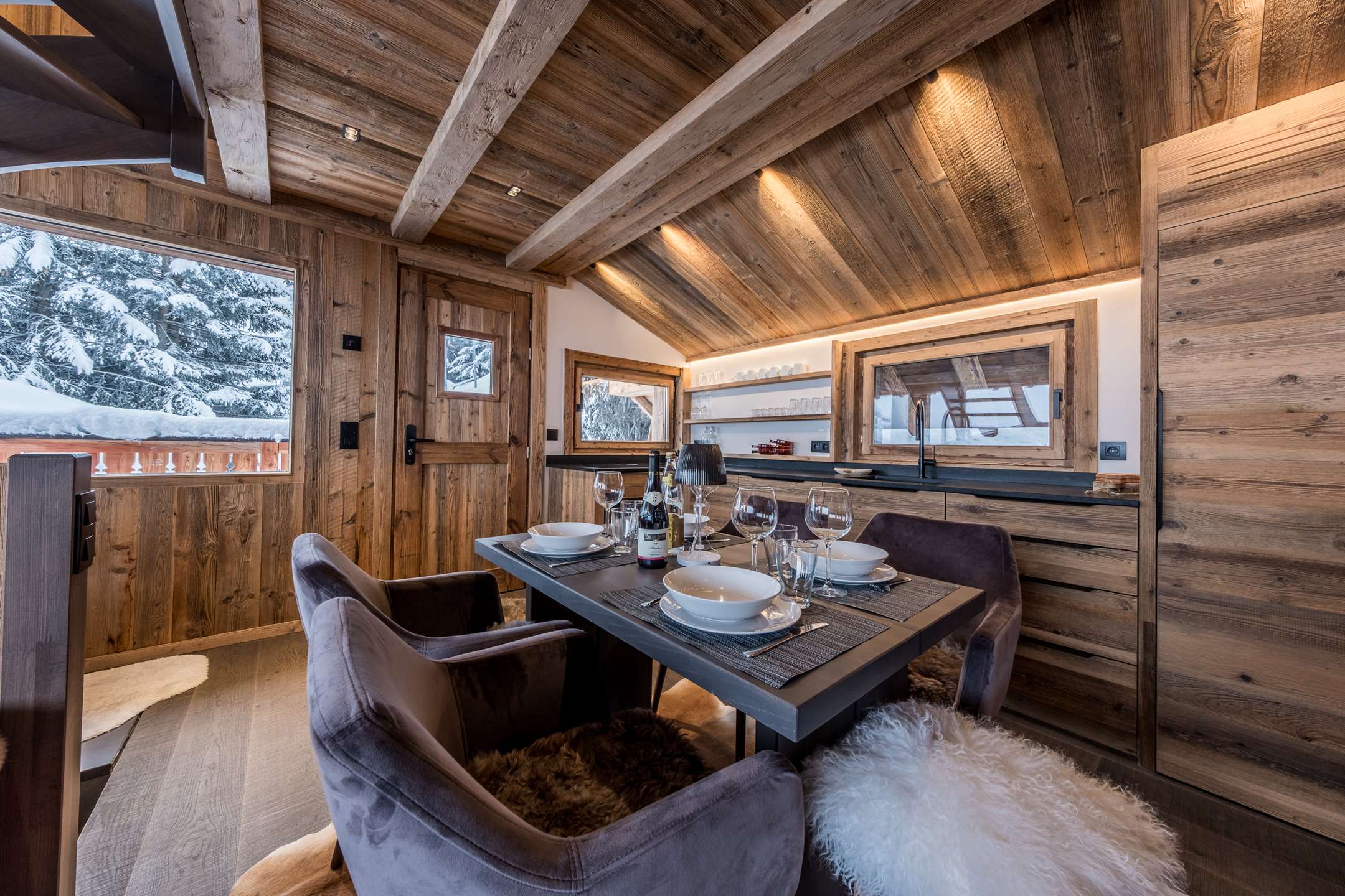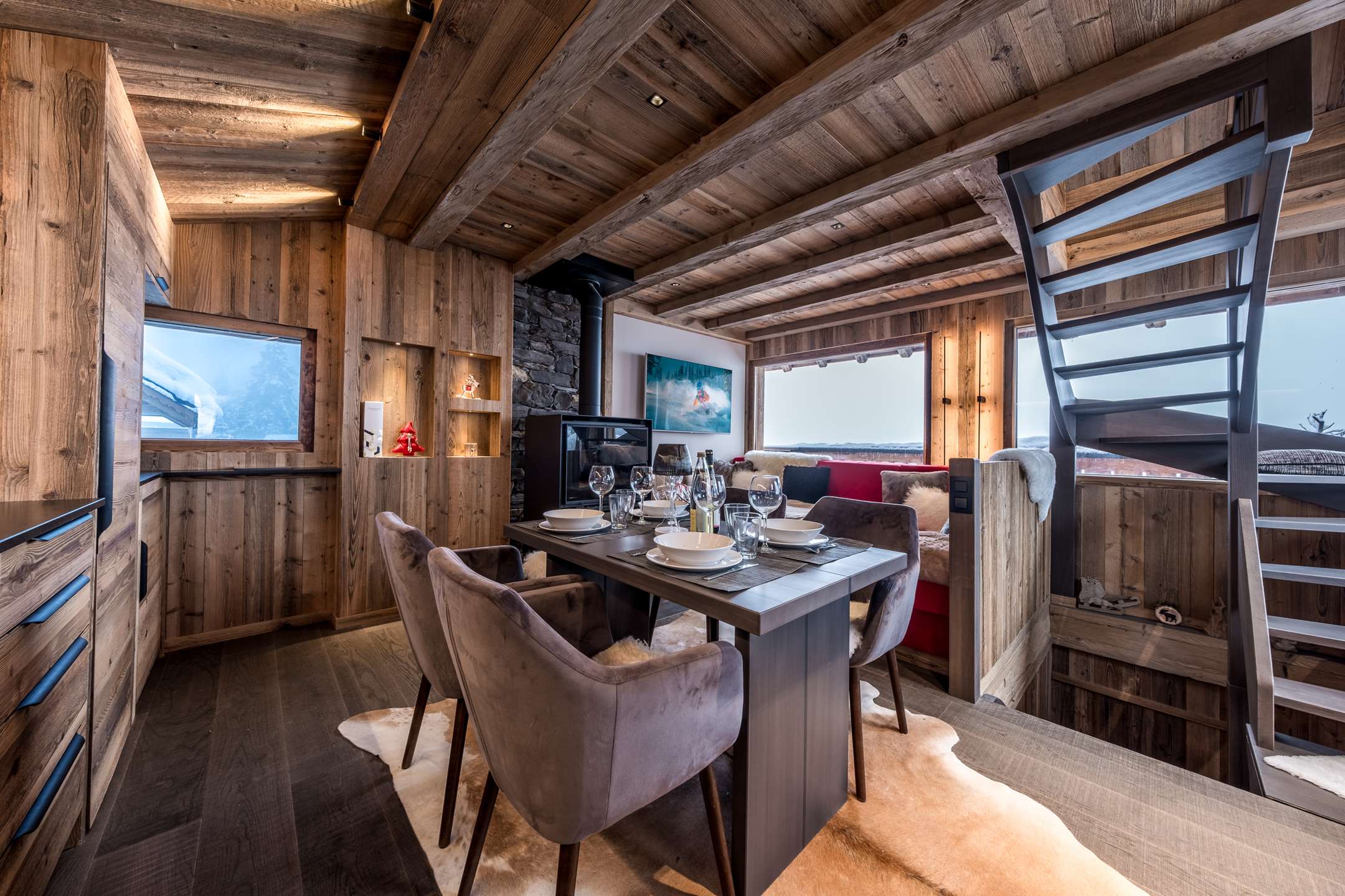 Charming little 3-level chalet in a natural setting with a warm, mountain-style atmosphere, offering a superb view of the mountains. Located in the hamlet of Mazots in Courchevel 1850 close to the center of the resort and the slopes.